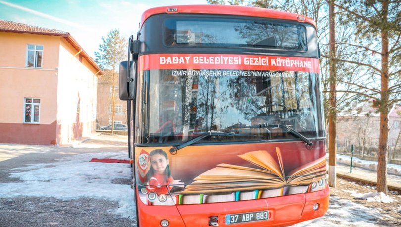 İzmir Büyükşehir Belediyesinden Daday Belediyesine bağışlandıktan sonra gezici kütüphaneye çevrilen yolcu otobüsü, ilçedeki okullarda öğrencileri kitapla buluşturuyor.