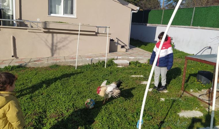 Çatalca’da bir evin bahçesinde beslenen “Efe” isimli horozun futbol aşkı kameralara yansıdı. Çocuklarla birlikte top oynayan horoz, futbolculara taş çıkardı.