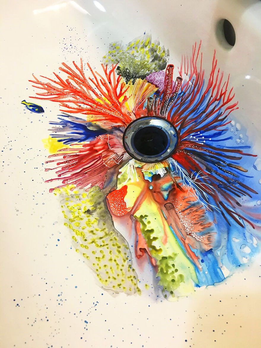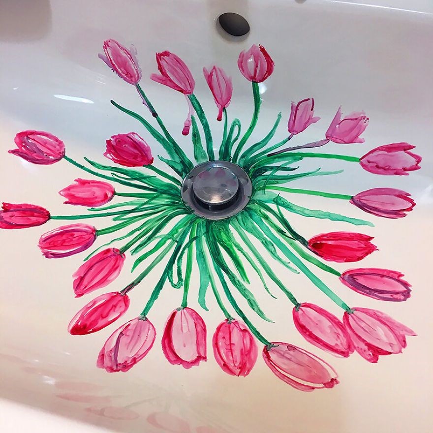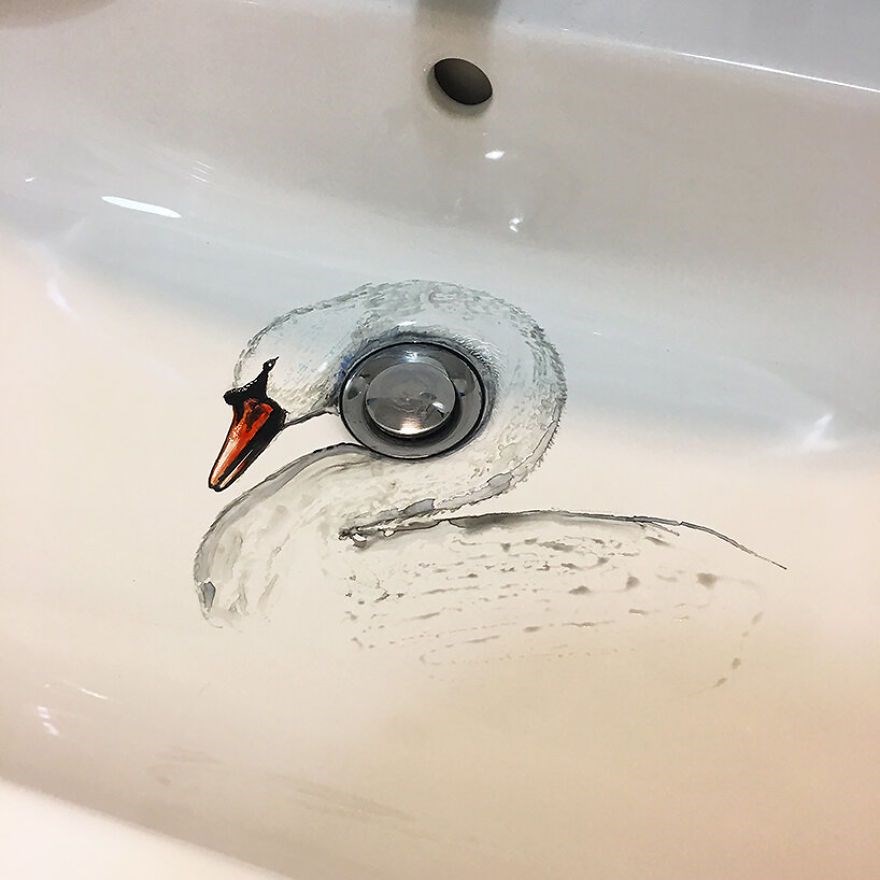 İtalyan ressam lavaboyu tuval olarak kullandı