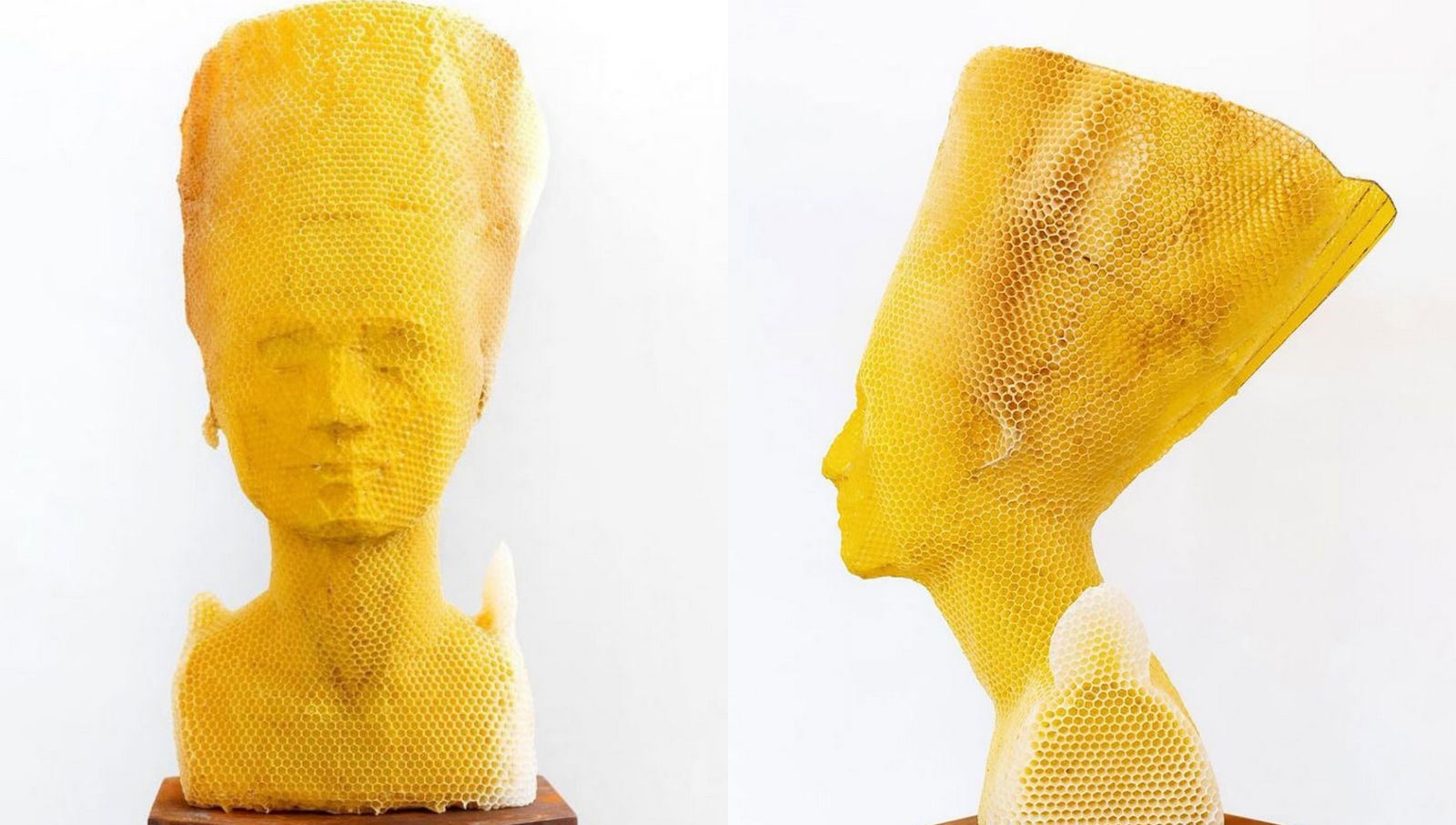 Slovak sanatçı Tomáš Libertíny, bal peteğinden Nefertiti büstü yaptı. Sanatçı, eseri için 60 bin bal arısından yararlandığını açıkladı.